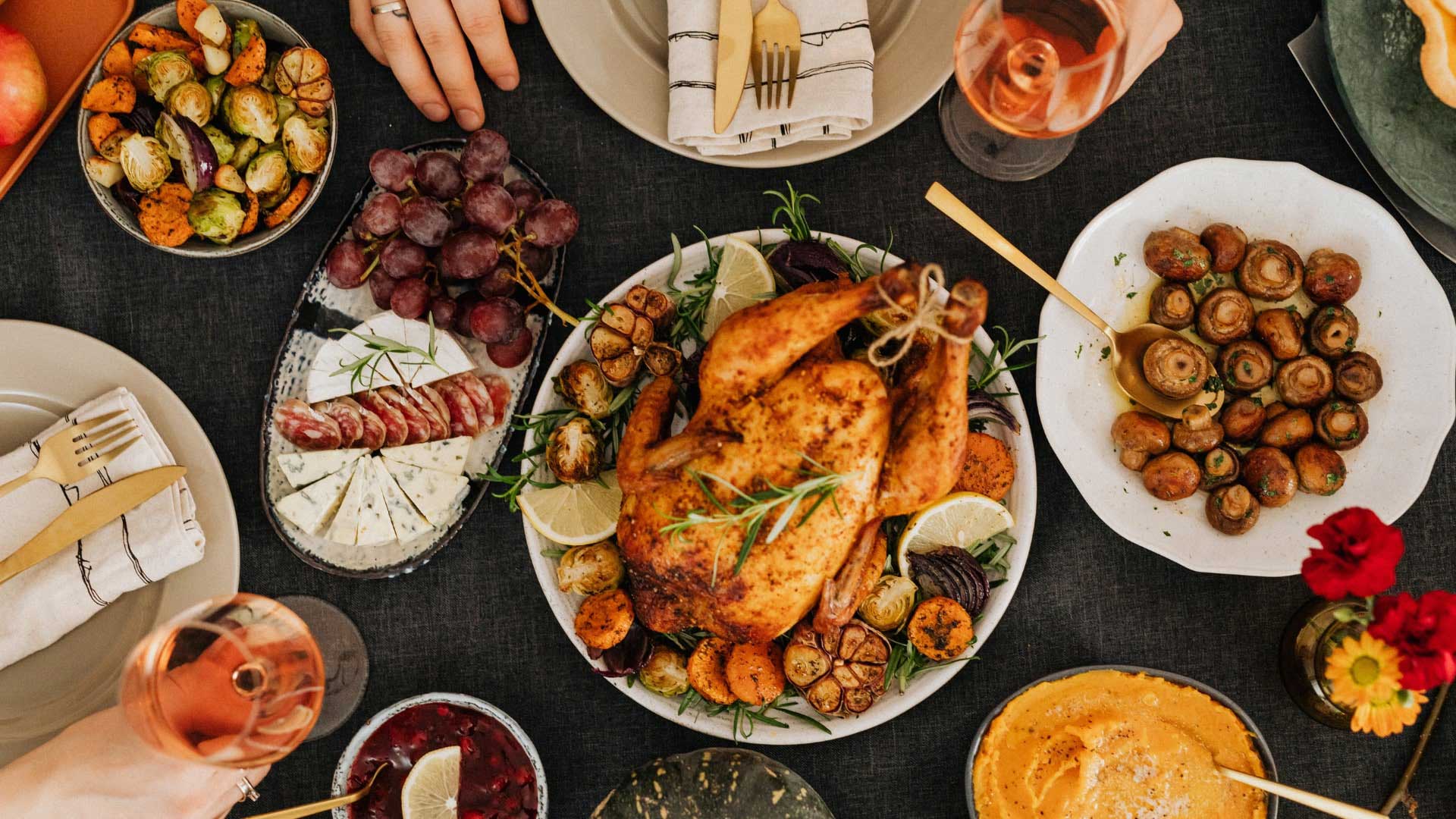 Start your meal with a charcuterie board, shrimp cocktail, or a warm bowl of butternut bisque, then move on to hearty favorites such as garlic mashed potatoes, stuffing, and roasted sweet potatoes topped with toasted marshmallow. Don’t forget to stop by the Caesar salad station for something fresh before ending the feast with a slice of pumpkin cheesecake.